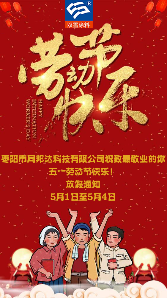 2019年五一勞動節(jié)來臨之際,棗陽市同邦達(dá)科技有限公司祝大家五一勞動節(jié)快樂!五一勞動節(jié)是全國人民廣大勞動者的偉大節(jié)日,祖國建設(shè)和繁華離不開廣大勞動者。不忘初心,牢記使命!棗陽市同邦達(dá)科技有限公司祝福大家勞動永遠(yuǎn)快樂!!!